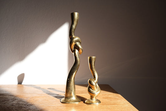Pair of Brutalist brass candlesticks, Italy 1970s