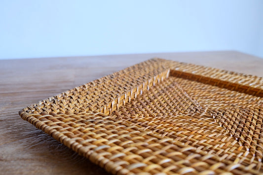 Hand-woven square rattan tray