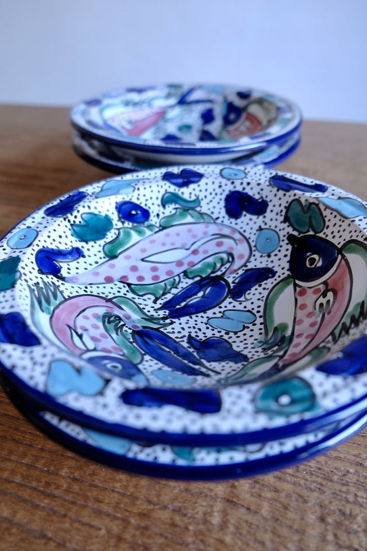 Set of 4 Tunisian fish motif hand-painted pasta bowls